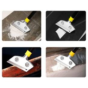 Formato do Aparelho: T Tamanho do Aparelho: 10 x 60 cm Formato da Lâmina: Retangular Tamanho da Lâmina: 100 x 18 mm Material do Cabo: Plástico resistente e leve Uso: Ideal para remoção de tintas, adesivos, e resíduos em superfícies amplas Ergonomia: O formato em T proporciona melhor controle e conforto durante o uso