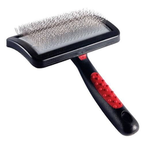 Rasqueadeira Curva Bubble Média Precision A Rasqueadeira Curva com Pinos de Bolinha é um acessório indispensável para o seu Pet Shop ou para o seu próprio animalzinho de estimação. Possui design inovador, com cantos arredondados. E além de alisar o pelo do animal, proporciona uma massagem agradável na pele, sem risco de machucar, devido aos seus pinos em aço inoxidável flexíveis e com a ponta protegida. Contém cabo emborrachado com alças antiderrapantes que proporcionam uma pegada mais confortável e firme. Ficha técnica - Cor: Preto e vermelho - Materiais do cabo: Plástico - É : Não - É tira pelos: Sim - Unidades por embalagem: 1 - Fonte do produto: Precision - Formato da escova: Pente - Modelo: Com bolinhas - Material das cerdas: Aço inoxidável - Tamanho: M Marca: Não Informado Ean: 7897373175557