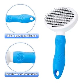 Escova Removedora de Pelos e Massageadora para Pets BENEFÍCIOS: ? Massageia enquanto remove os pelos; ? Previne doenças de pele e aumenta a circulação sanguínea; ? Melhora a saúde dos pelos; ? Idealpara qualquer pet; ? Alça antideslizante para facilidade de uso; ? Fácil de lavar; DESCRIÇÃO DO PRODUTO: - Essa escovafoi criada para retirar os pelos mortos enquanto ela massageia suavemente o seupet. - Com cerdas em aço inox que remove facilmente os pelos soltos. A ponta do pente fica protegida e não prejudica a pele do gatinho ou de seu cachorro. - Toque apenas uma vez no botão para liberar os pelos indesejados. ESPECIFICAÇÕES DO PRODUTO: Material: Plástico e Aço inoxidável Cor: Branco Tamanho aproximado: 10cm x 18cm X 6,5cm Peso Aprox.: 120g ITENS INCLUSOS: 01x Escova Removedora de Pelos para Pets