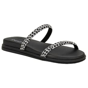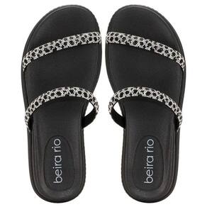 Rasteira Beira Rio Casual Flat Tiras Com Brilho Feminino Preto