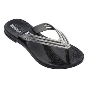 - Chinelo infantil de dedo com tiras finas e acabamento metálico