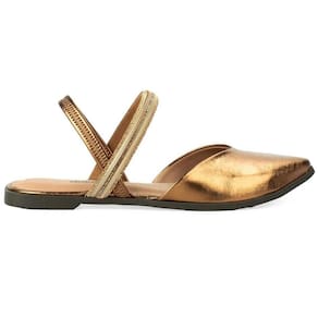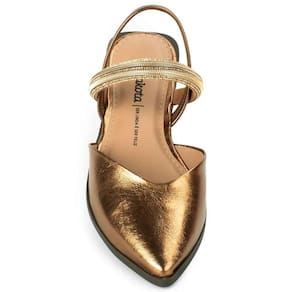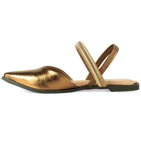 Rasteira Dakota Tira Strass Bico Fino Feminina - Cobre - Amarelo Ouro - 38