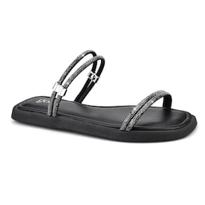 Eleve o seu estilo com a elegante Rasteira Flat Sandália Brilho Strass na cor preto. O charme dos detalhes em Strass traz sofisticação e brilho para o seu visual. Seu conforto é garantido pelo solado macio. As tiras traseiras são ajustáveis, com a opção de usar como rasteira ou sandália. Seja o centro das atenções com essa Rasteira Sandália Strass Preto GODIVA.
