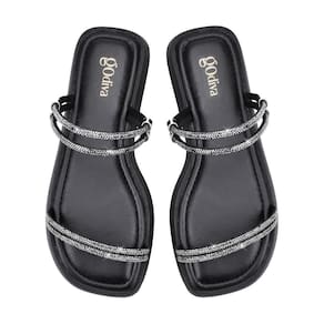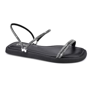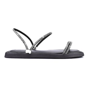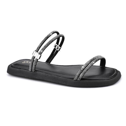 Rasteira Flat Sandália Brilho Strass Feminino Godiva Preto Onix 334090