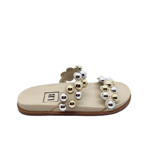 Eleve o seu estilo com a Rasteira Flatform Off White com Pedras, um verdadeiro símbolo de elegância e conforto. Esta rasteira combina o charme do off white com o brilho das pedras douradas e prateadas, proporcionando um visual deslumbrante e uma sensação de luxo a cada passo.
