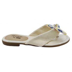 Rasteira Kidy Flat Ibiza Bege Off White Laço Colorido 321628