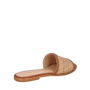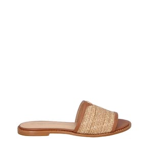 A rasteira em couro no tom de caramelo com detalhe em palha combina textura natural e acabamento sofisticado. O detalhe da caliandra de metal traz um toque moderno, criando um equilíbrio entre o rústico e o elegante. Um modelo versátil que traduz o frescor e a leveza da temporada.