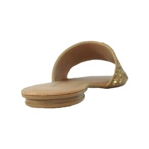 Linha de Rasteira Luiza Sobreira, produzida em material sintético na cor Caramelo, bico redondo, detalhes em strass, com palmilha e forro em P.U., solado em TR. Produto leve, elegante e confortável para você. (No tamanho 38): A altura do salto é de 1 cm.