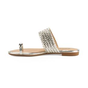 O Slide Mississipi destaca seu design minimalista e atemporal, que torna esse modelo versátil. O destaque fica por conta da tira larga e tramada que envolve o pé, adicionando um toque de sofisticação ao modelo, e da tira que envolve o dedo com a peça metalizada, que confere um ar elegante e único.