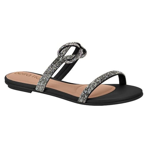 Rasteira Papete Beira Rio Duas Tiras Brilhos Strass 8384.664 - 39 - Preto