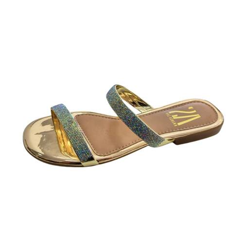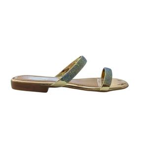 Rasteira Rasteirinha Feminina Metalizada Com Brilho Strass Tiras Finas Confortaveis Leve Dia a Dia - 37 - Amarelo Claro