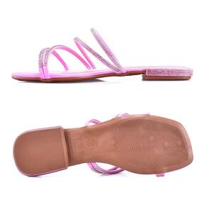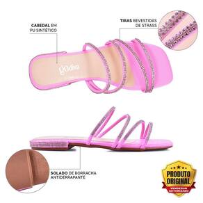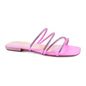Rasteira Rosa com 4 Tiras em Strass Rosa Light Godiva Confortavel 334026