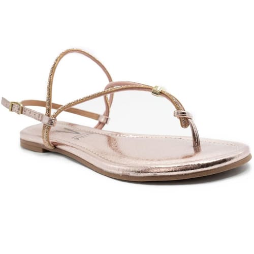 Rasteira Vizzano Tira Strass Metalizada Feminina - Ouro Rosado - 38 - Rosa