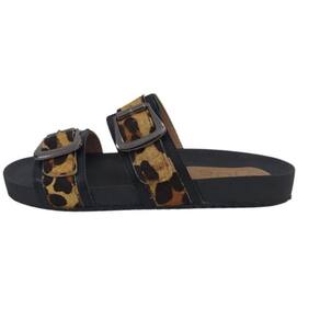 Rasteirinha Feminina Chinelo Calce Fácil Conforto Onça Savana - 42 - Marrom