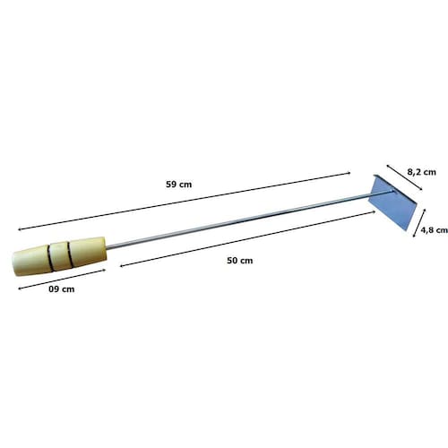 RASTELO PUXADOR E ESPALHADOR DE BRASA 59 CM Um ótimo acessórios para mexer o carvão / lenha e preparar seu fogo com segurança. Peça com cabo de madeira