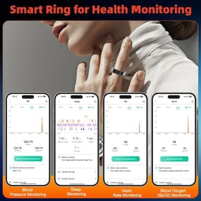 - Anel inteligente com monitoramento abrangente de saúde: nosso anel de saúde avançado rastreia a pressão arterial, oxigênio no sangue, frequência cardíaca e padrões de sono, incluindo sono profundo, sono leve, sono REM e o número de despertares durante a noite. Projetado para homens e mulheres, ele fornece informações de saúde em tempo real para ajudar você a manter o bem-estar ideal. Esteja você monitorando sua atividade diária ou monitorando sua qualidade de sono, este anel de saúde é um item essencial para qualquer pessoa focada em sua saúde