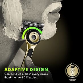 Máquina de barbear GilletteLabs com barra esfoliante para homens, Champion Gold Edition — 1 alça, 1 recarga de lâmina de barbear, inclui suporte magnético premium — A melhor experiência de barbear: a GilletteLabs com barra esfoliante da Gillette é a primeira máquina de barbear do mundo com tecnologia esfoliante embutida na alça — para a melhor experiência de barbear da Gillette — Barra esfoliante embutida: embutida na alça, a esfoliante a barra libera os cabelos presos para um barbear suave — CONFORTO E PROXIMIDADE INCRÍVEIS: esta navalha masculina apresenta especialmente as cinco lâminas afiadas da Gillette projetado para proporcionar conforto e proximidade - DESIGN ADAPTÁVEL: O FlexDisc 2D contorna seu rosto para garantir conforto e contato a cada golpe - DURABILIDADE DE LONGA DURAÇÃO: O cabo da navalha e a barra esfoliante contam com garantia vitalícia
