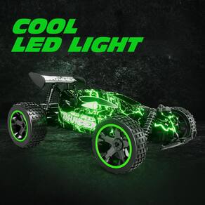 Descubra as emoções de alta velocidade do carro RC Tecnock em escala 1:18, atingindo velocidades de até 20 km/h. Projetado para crianças e adultos, este carro de controle remoto durável possui um invólucro de PVC robusto, pneus de borracha para todos os terrenos e luzes LED atraentes que adicionam um elemento visual divertido durante o jogo. Desfrute de mais de 50 minutos de diversão com uma única carga com um sistema de controle sem interferência de 2,4 GHz, tornando a corrida multijogador perfeita. Perfeito para aniversários, feriados, Natal e outras ocasiões especiais, a Tecnock traz emoção infinita e cria oportunidades maravilhosas para criar laços entre pais e filhos. É o presente ideal para qualquer criança que adora corrida. - Design durável com luzes LED: com um revestimento de PVC durável e design texturizado, este carro RC é feito para durar. As luzes LED integradas melhoram a diversão, proporcionando uma experiência visual emocionante para as crianças durante a brincadeira. - Rápido e pronto para todos os terrenos: Alimentado por um motor forte, este carro de controle remoto em escala 1:18 atinge velocidades de até 20 km/h para corridas emocionantes. A suspensão robusta, os amortecedores e os pneus duráveis garantem uma condução suave e estável em várias superfícies. - Tempo de reprodução prolongado: o carro RC possui um sistema de bateria recarregável, oferecendo até 50 minutos de reprodução, dependendo do uso. O pacote também inclui baterias para o controle remoto, garantindo uma experiência de jogo conveniente e prolongada. - Controle fácil e sem interferências: o sistema de controle remoto de 2,4 GHz permite uma operação suave e fácil, evitando interferência de sinal mesmo quando vários carros RC estão correndo juntos. Ideal para diversão multijogador. - Presente ideal para crianças: Com seus efeitos de luz legais e desempenho emocionante, este carro RC é um excelente presente para meninos e meninas. É o presente perfeito para aniversários, feriados, Natal ou qualquer ocasião, trazendo diversão e emoção sem fim.