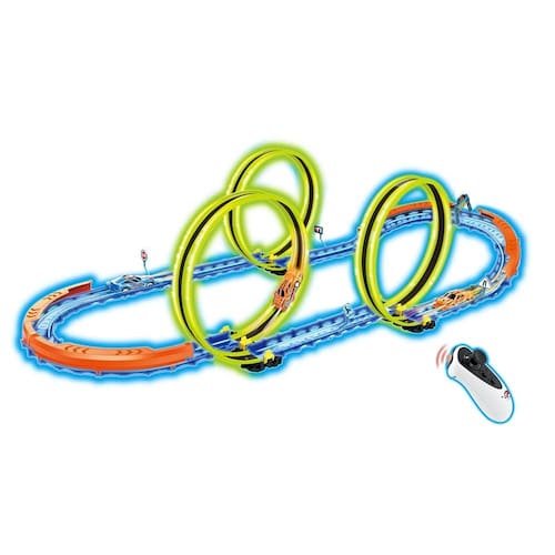 - Inclui 1 controle remoto infravermelho e 1 carro RC com faróis/holofotes que refletem na pista. Enquanto você corre, o carro deixa um rastro de luz.