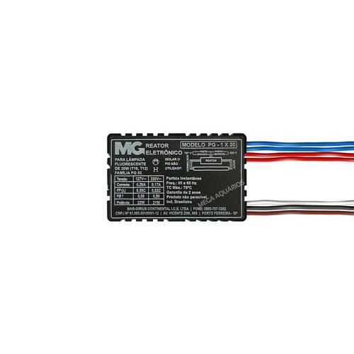 Reator eletrônico margirius para ligar uma lâmpada tubular ultravioleta uvc uva uvb germicida, actínica, grow, luz negra ou branca luz do dia comum fluorescente de 20wOs reatores eletrônicos da margirius são os mais indicados para as lâmpadas ultravioletas germicida, actínica, grow, luz negra ou para lâmpadas comuns de quatro pinos. São de fácil instalação e geram uma economia de 30% em comparação aos reatores eletromagnéticos.Características:Indústria nacional SeguroCompactoModelo ideal para ligar lâmpada ultravioleta germicidaReator eletrônico para acender uma lâmpadaPara lâmpada de 4 pinos fluorescentePartida instantânea30% mais econômico em relação aos modelos eletromagnéticosMaior eficiência e durabilidade para as lâmpadasNão é a prova dáguaCompatibilidade:Modelos de lâmpadas: t5 t8 t10 t12 se plQuantidade de pinos na lâmpada: 4Potência da lâmpada: 16w 18w 20w 21w 24w 25wTipos de lâmpadas:Comum e ultravioletas:Branca luz do diaUva actínica, mata mosca - bl Uvb grow - luz rosa Uvc ultravioleta c - germicida - gl Luz negra efeito neon - black light blue - blb Especificações:Fabricante: margiriusModelo: pg - 1x20Voltagem: pode ser ligado em 110v ou 220vDimensões: 6,5 x 3,5 x 4cm larg x alt x profundidadePeso: 80gCorrente: 0,29a 127v / 0,17a 220v Potência: 22w 127v / 21w 220v Temperatura máxima de trabalho: 75cObservações e precauções:A instalação deve ser feita por um profissional especializadoInstalar o reator conforme o esquema de ligação gravado no corpo do produto;Isolar corretamente o fio não utilizadoTrocar a s lâmpada s somente com o reator desligadoNão instalar o reator em ambientes úmidos, sujeito a intempéries ou em locais em que a temperatura ambiente seja inferior a 10ºc ou superior a 45ºc;Não recomendamos aumentar o comprimento dos cabos da s lâmpada s por mais de 2 metros, bem como enrolá-los ou trançá-los entre si ou com outros cabos.Obrigado pela visita e boas comprasAtençãoNossas imagens e textos são registrados e com direito de uso autoral controlado e reservado a essa loja e as lojas parceiras devidamente autorizadas em contrato.