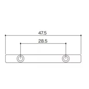 Dimensões: Barra: 47,5mm Espaçamento entre os furos: 28,5mm