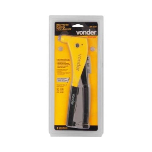 O rebitador manual, tipo alicate, RM 100, VONDER possui corpo em alumínio fundido, proporcionando mais leveza e excelente resistência mecânica e à oxidação/corrosão.