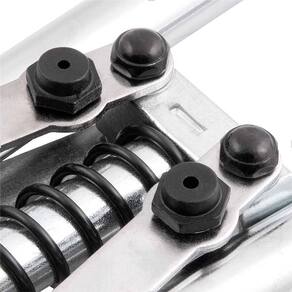 Possui cabo em aço carbono cromado revestido com borracha, proporcionando maior conforto no manuseio. Uso industrial/reforçado. Indicado para unir peças, como: chapas, tubos, perfis, entre outras, através de rebites de repuxo.