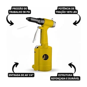 O Rebitador Pneumático Profissional JRP11 JST foi desenvolvido para aplicações profissionais em montagens, reparos e produção seriada, oferecendo alto desempenho, operação rápida e excelente produtividade. Compatível com rebites de 3/32” a 3/16”, é ideal para trabalhos que exigem força, precisão e repetibilidade.