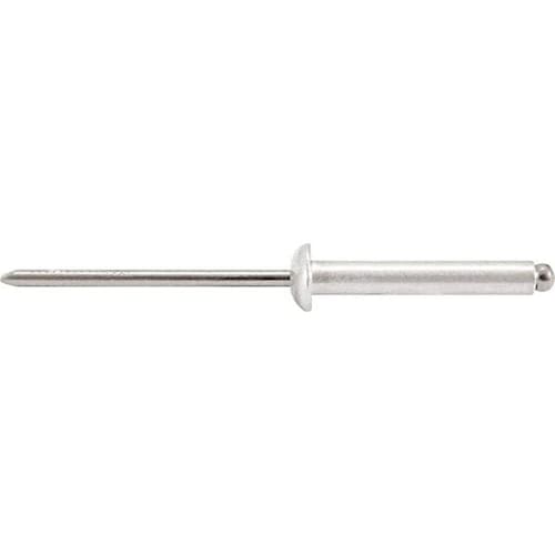 :: Especificações Técnicas: - Diâmetro do corpo do rebite: 4,8 mm - Comprimento do corpo do rebite: 25,0 mm - Material do corpo do rebite: Alumínio - Acabamento do rebite: Polido - Diâmetro do furo recomendado para colocação do rebite: 4,9 mm