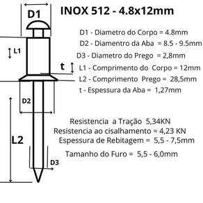 Rebite Repuxo Aço Inox 304 Arrebite 512 4.8x12 com 200pça