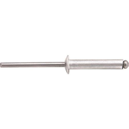 Diâmetro do corpo do rebite: 4,8 mm Comprimento do corpo do rebite: 12,0 mm Material do corpo do rebite: Alumínio Material do mandril do rebite: Aço 1010/1020 Acabamento do rebite: Polido Diâmetro do furo recomendado para colocação do rebite: 4,9 mm