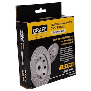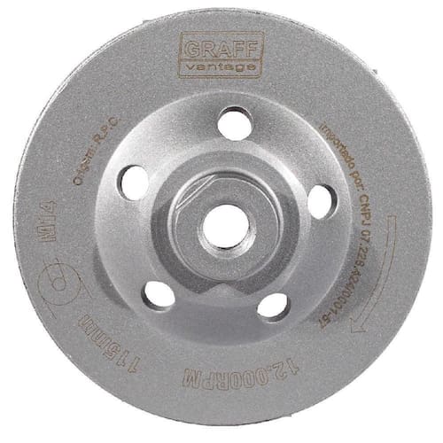 Marca: Graff Vantage Rebolo Diamantado Tipo Prato com rosca M14. Indicado para nivelar, dar acabamentos, remover pinturas e argamassa, desbastar granitos, pedras, mármores, concretos, paredes, alvenarias e refratários. Marca: Graff