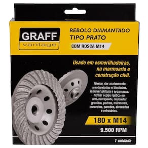 Marca: Graff Vantage Rebolo Diamantado Tipo Prato com rosca M14. Indicado para nivelar, dar acabamentos, remover pinturas e argamassa, desbastar granitos, pedras, mármores, concretos, paredes, alvenarias e refratários. Marca: Graff