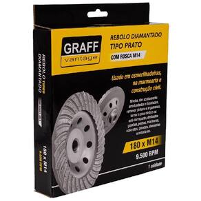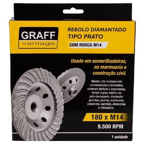 Marca: Graff Vantage Rebolo Diamantado Tipo Prato com rosca M14. Indicado para nivelar, dar acabamentos, remover pinturas e argamassa, desbastar granitos, pedras, mármores, concretos, paredes, alvenarias e refratários. Marca: Não Informado