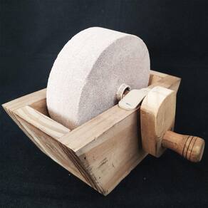 Rebolo Para Afiar Faca Amolador De Faca Pedra De Amolar Afiador #Afie Corretamente Suas Facas #Afiação Rápida e Eficaz #Pedra Grês Natural Garantia: 90 dias / Peso: 1,960Kg / Cor: Marrom e Natural / Ref: 5110RBL Dimensões da Pedra: 14cm (C) x 4,5cm (L) Dimensões do Suporte: 21cm (C) x 10,5cm (L) x 9cm (A) Pedra móvel, afiação será feita girando a haste. Material: - Pedra Grês; Material ideal para afiação de faca, pois proporciona melhor fio sem arranhar a lâmina. - Madeira. O rebolo para afiar, é um item essencial para quem cuida de suas facas pois a beleza de uma faca se perde se ela não tiver um fio à altura. O rebolo possui um design campeiro podendo ser um item de decoração quando não está sendo utilizado. Possui um suporte em madeira lisa e resistente, dando mais segurança e praticidade ao afiar. Mantenha suas facas afiadas e prontas para o uso com essa pedra para afiar.