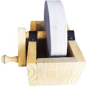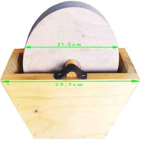 rebolo para afiar facas amolador de facas manual grande . Rebolo: o rebolo é um excelente item para você afiar a sua faca, além de que ele é um ótimo item decorativo para sua casa quando não está em uso, pois ele possui um design rústico e campeiro que combina com qualquer tipo de decoração. Grês: grês é o material da pedra utilizado no rebolo, que apesar de necessitar de cuidados por fragilidade em relação a impactos, ele contém alta resistência à abrasão desgaste superficial , resistência a ácidos, resistência à água pode ser utilizado em locais molhados , além de fácil limpeza e manutenção do produto. Este material é perfeito para a afiação de facas, proporcionando melhor fio sem arranhar a lâmina. Sobre o produto: