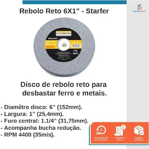 Rebolo Reto 6 X 1 Grão 46 Starfer