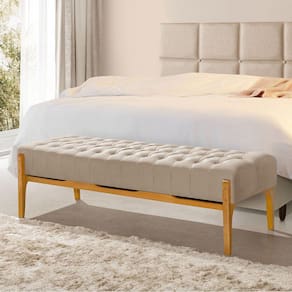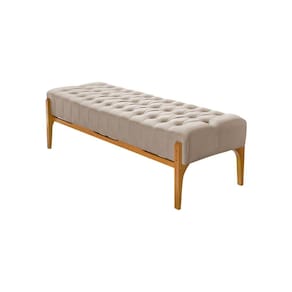Recamier Base em Madeira Puerto 1,83m Capitonê Veludo Bege