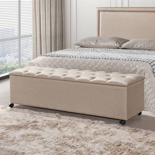 Recamier Baú Com Rodízios Cancun 1,50m Linho Bege - Cor: Bege Se você está procurando um móvel versátil para o seu quarto, o Recamier Baú Cancun é a escolha perfeita para você! Com detalhe em capitone, traz um charme extra para o ambiente, deixando-o ainda mais elegante e sofisticado.CaracterísticasTipo: Recamier Baú Modelo: Cancun Tecido: LinhoCor: BegeDIMENSÕES DO PRODUTOAltura: 46cmLargura: 150cmComprimento: 46cmInformações adicionais:- Materiais da estrutura: Madeira ecológica, MDF- Requer montagem: Sim- Limpeza: Não usar produtos abrasivos, usar apenas peno seco e limpo.- Com rodízios: Sim- Garantia: 3 Meses à partir da emissão da NFATENÇÃOAS IMAGENS SÃO MERAMENTE ILUSTRATIVAS E PODEM SOFRER VARIAÇÕES DE COR E PEQUENOS DETALHES DE ACORDO COM O SEU MONITOR, ILUMINAÇÃO DO AMBIENTE E ATÉ MESMO A SUA PERCEPÇÃO VISUAL.Recamier Baà com RodÃzios Cancun 1,50m Linho Bege Marca: Villa Casa Decor