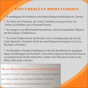 - Poderá ocorrer uma pequena variação de tonalidade na cor do produto, devido a produção de luz e sombra da foto, comparado ao ambiente residencial.