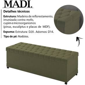 Recamier Calçadeira Bau 160 cm Rodizios Madi Corano, com estilo único e a qualidade que você busca, seu desenho clean dispõe de harmonia para qualquer ocasião. Estrutura em madeira de reflorestamento (pinus, eucaliptos e placas de MDF). Composto por madeira imunizada contra mofo, cupim e microrganismos, baú com dobradiças metálicas e ótimo espaço interno, que servirá para guardar suas cobertas e travesseiros, revestimento em tecido corano, estrutura em espuma D-20, adornos em espuma D-14 e conta com 4 rodízios. Possui design requintado, que oferece sofisticação, charme e elegância ao seu ambiente. Este móvel chegará na sua casa separado em 01 volume.
