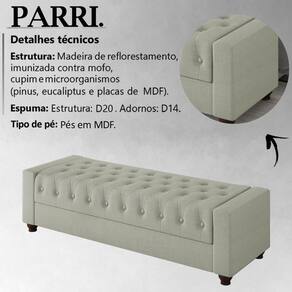 Recamier Calçadeira Bau 160 cm Pes MDF Parri Linho, ideal para quem procura por funcionalidade e modernidade, trazendo um visual versátil a sua decoração. Estrutura em madeira de reflorestamento (pinus, eucaliptos e placas de MDF) que oferece maior durabilidade ao produto. Composto por madeira imunizada contra mofo, cupim e microrganismos, baú com dobradiças metálicas e ótimo espaço interno, que servirá para guardar suas cobertas e travesseiros, revestimento em tecido linho, estrutura em espuma D-20, adornos em espuma D-14, e conta com 4 pés em MDF de 10 cm de altura. Possui design inovador e sofisticado, proporcionando charme e elegância ao seu ambiente. Este móvel chegará na sua casa separado em 01 volume.