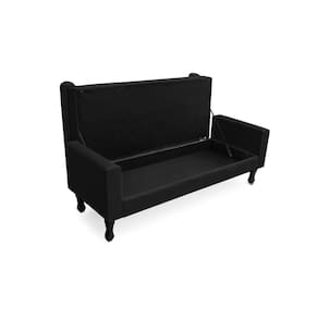 Recamier Calçadeira Fênix Baú Estofado Quarto Solteiro 90cm Suede Preto - LM DECOR