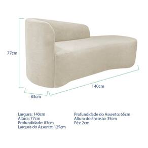 Recamier Curvo Orgânico 140cm 2 Lugares Lado Direito para Sala Estar Bouclé Paris Bege