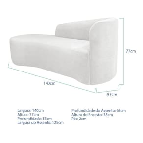 Recamier Curvo Orgânico 140cm 2 Lugares Lado Esquerdo para Sala de Estar Bouclé Paris Branco