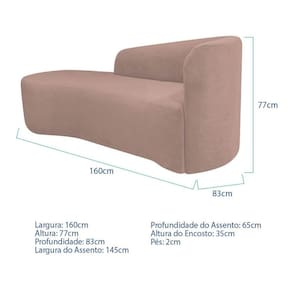 Recamier Curvo Orgânico 160cm 2 Lugares Lado Esquerdo para Sala de Estar Linho Paris Rose - Rosa