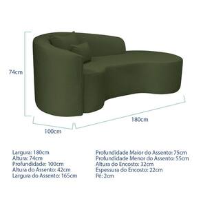 Recamier Curvo Orgânico 180cm 3 Lugares Lado Direito para Sala de Estar Linho Londres Verde