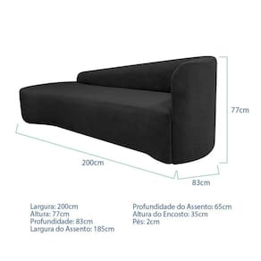 Recamier Curvo Orgânico 200cm 3 Lugares Lado Esquerdo para Sala de Estar em Linho Paris Preto
