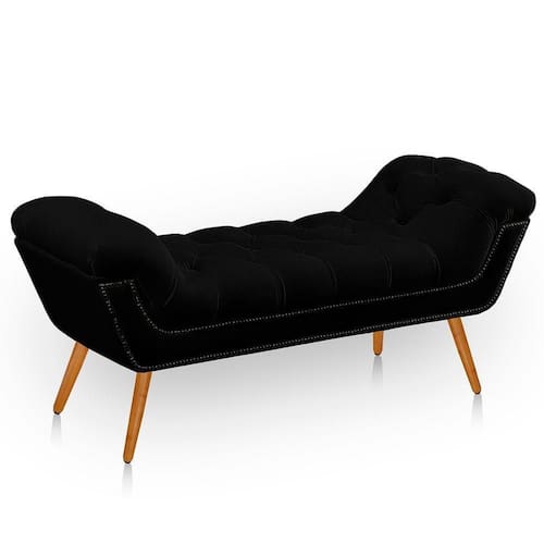 Recamier Estofada Casal King Size Ayla Veludo Cor Preto