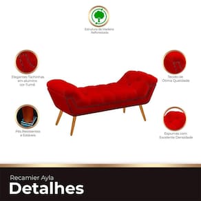 Recamier Estofada Casal King Size Ayla Veludo Cor Vermelho